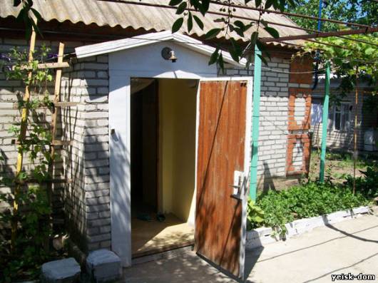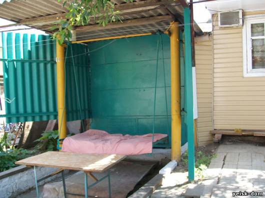 Дом без хозяев во дворе, но во дворе в другом доме живут другие отдыхающие. Общий двор.